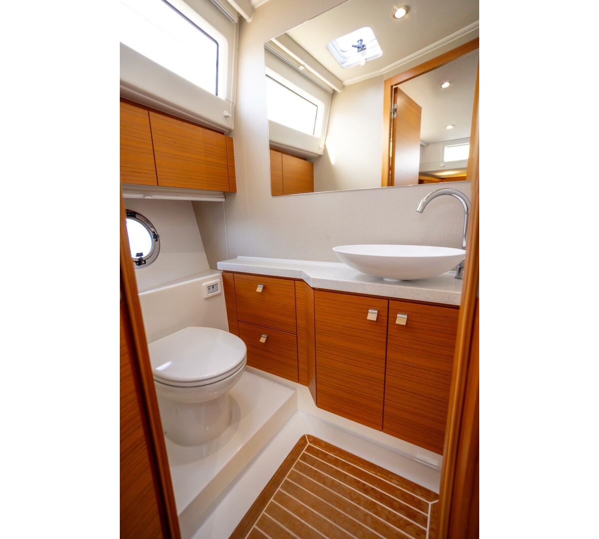 King size owners berth and separate head and shower rooms