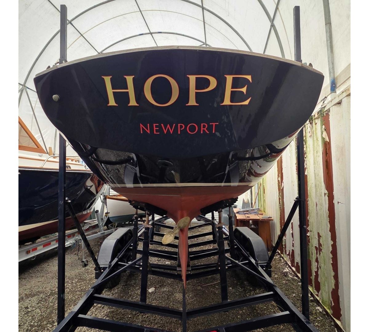 Between 2012 and 2014, HOPE received a comprehensive refit, including fresh paint inside and out, refinished spars, new sails, standing rigging, and updated canvas. Lightly used and stored ashore for several years, she has more recently been professionally maintained and regularly sailed out of Newport.