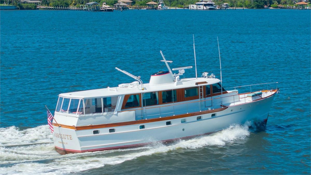 ABSOLUTE, Contract #440, is a rare and exceptional 62’ Trumpy—one of the final eight ever built. Originally commissioned by Bayard Sharp of the DuPont family and launched as GALPO, this storied yacht has had a distinguished ownership history and has been lovingly maintained through the years. Now under the care of her sixth owner, ABSOLUTE has undergone a comprehensive refit that brings her impressively close to her original launch condition. With a brand-new bottom, updated machinery, and fully modernized systems throughout, she is in outstanding structural, mechanical, and cosmetic condition. This iconic Trumpy is turnkey and ready to cruise, awaiting only the next steward to continue her legacy. Easy to see in our tide-free, fresh water, covered showrooms at Atlantic Yacht Basin on the Intracoastal Waterway, just 12 miles south of Norfolk, VA.